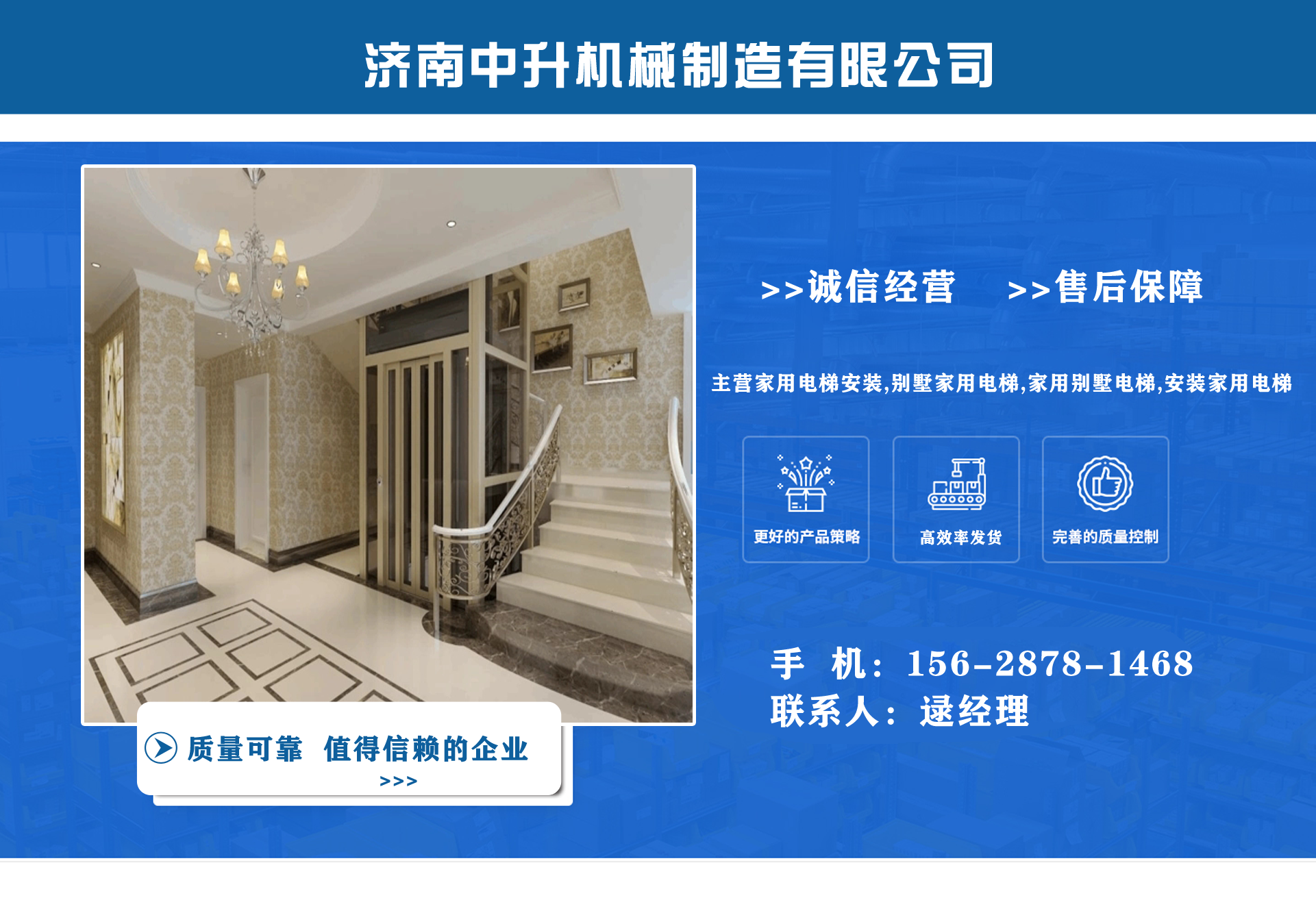 濟(jì)南中升機械制造有限公司主營家用電梯安裝,別墅家用電梯,家用別墅電梯,安裝家用電梯等業(yè)務(wù),質(zhì)量可靠,值得信賴! 公司為客戶提供免費上門測量,根據(jù)實際情況1對1服務(wù),保障符合用戶需求,終身提供售后服務(wù),讓用戶買的舒心用的放心。匠心團(tuán)隊,打造信賴產(chǎn)品,我們有團(tuán)結(jié)、奮進(jìn)拼搏的匠心團(tuán)隊,為您提供可信賴的品質(zhì)保證?! 膭?chuàng)立以來一直嚴(yán)格執(zhí)行質(zhì)量管理體系、環(huán)境管理體系等相關(guān)標(biāo)準(zhǔn)管理體系,“顧客滿意”是我們始終如一的追求。我們有屬于自己培養(yǎng)的安裝隊伍,24小時服務(wù)電話,為您提供可靠的服務(wù)與支持。 我們的愿景是建設(shè)國內(nèi)具有影響力的電梯公司,做城市美好空間的好伙伴。...
